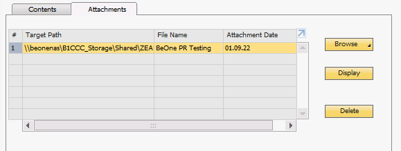 Pada tab attachment ini akan ada tombol Browse, Display, dan Delete.