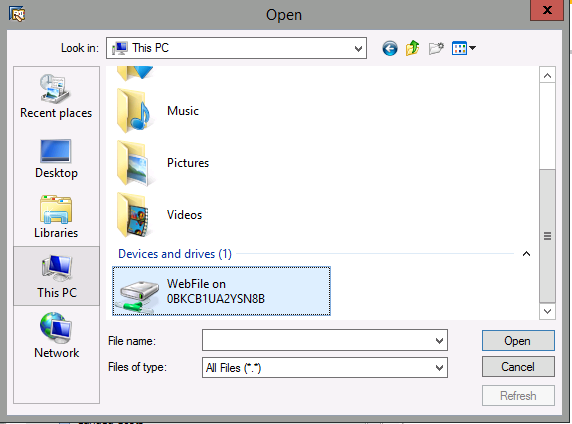 Untuk menemukan file yang sudah di upload tadi bisa klik This PC dan double click pada disk WebFile seperti gambar di bawah.