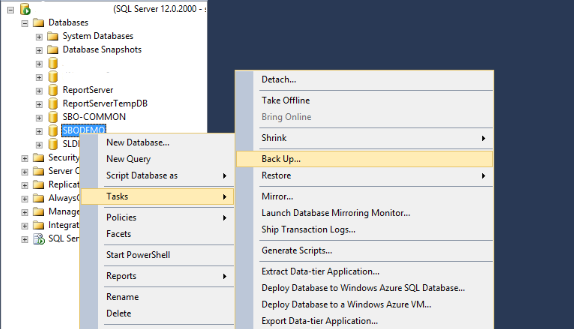 Klik kanan pada database yang akan di backup lalu pilih Tasks > Back Up