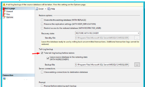 Jika ada message seperti ini, di unceklis pada kolom Tail-Log Backup
