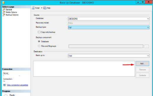 Klik Add untuk menentukan lokasi tujuan yang akan di backup