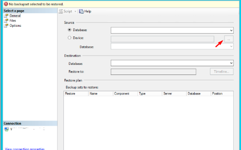 Cek tujuan database yang akan di restore akan disimpan pada folder mana