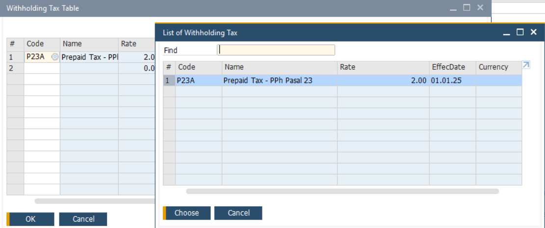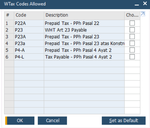 Withholding Tax Code PPh 23 sudah dibuat dan aktif