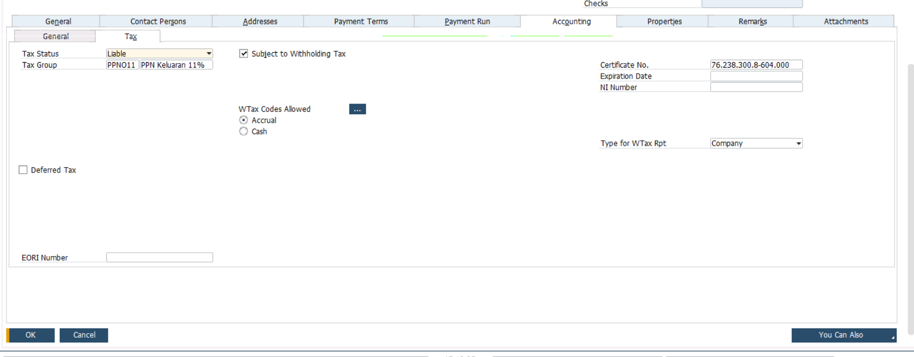 Business Partner (Customer) sudah di-set sebagai Subject to Withholding Tax
