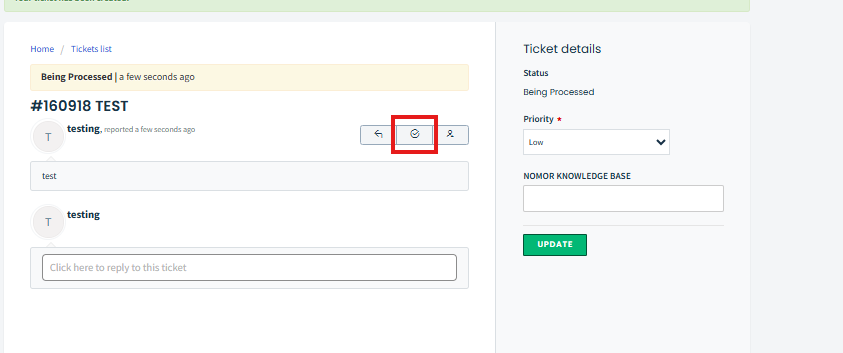 Baik, caranya adalah ketika ticket sudah closed, Bapak dapat klik checklist “ticket sudah selesai”.