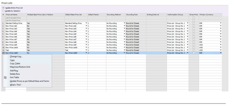 - Disarankan hanya user tertentu yang dapat mengubah Price List