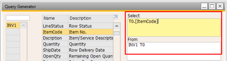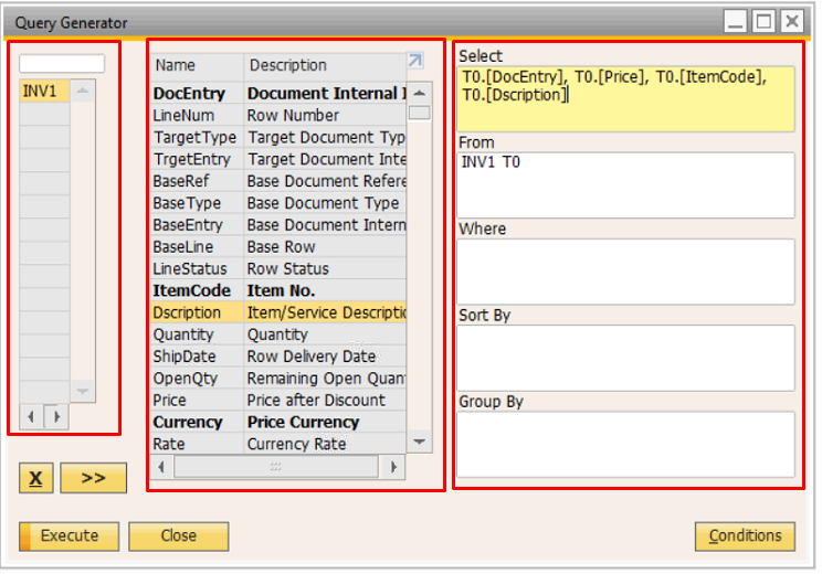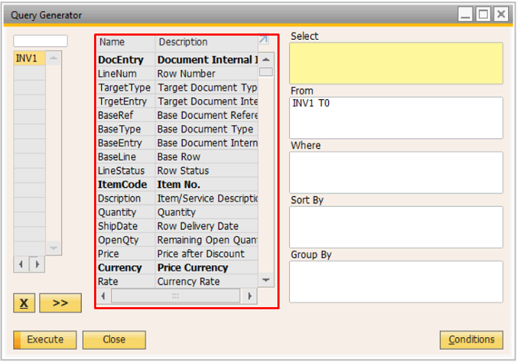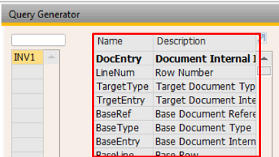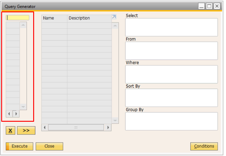 Pada bagian kiri terdapat kolom untuk memasukkan kode tabel yang tersedia di dalam database SAP Business One.