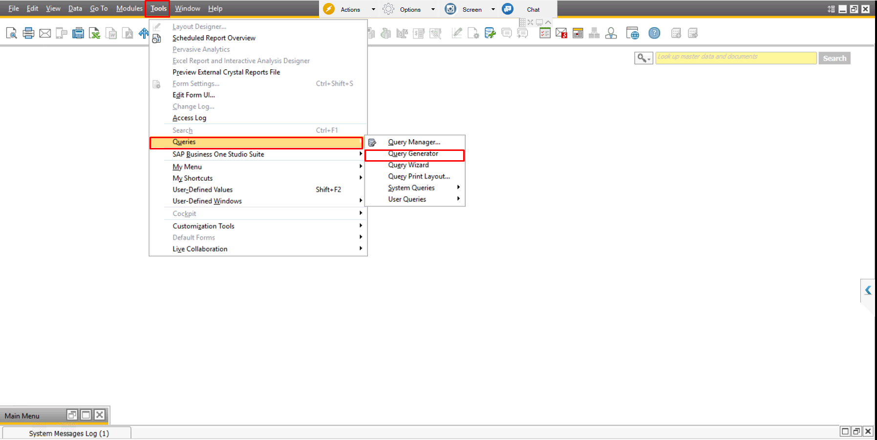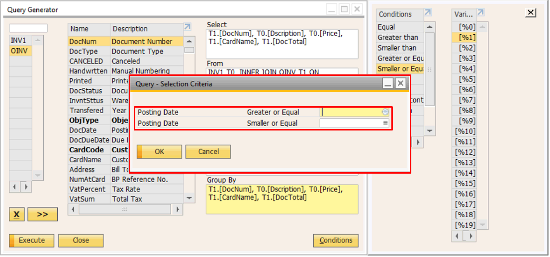Query Generator merupakan salah satu fitur pada SAP Business One yang digunakan untuk membuat query secara langsung terhadap database sistem. Fitur ini memungkinkan pengguna mengambil, memfilter, serta mengolah data dari berbagai tabel yang terdapat di dalam database SAP B1.