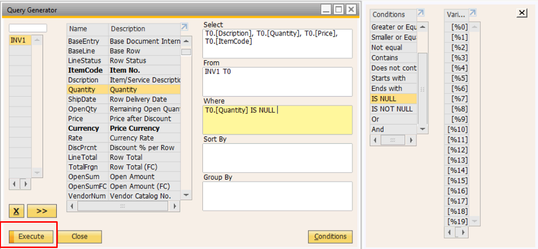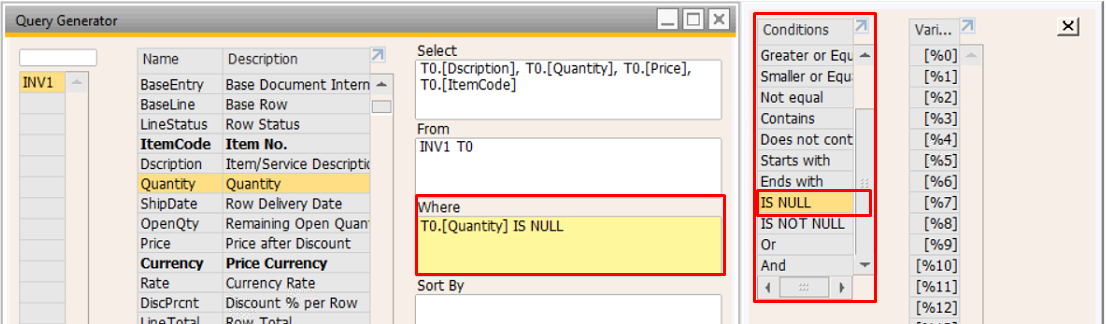Or | Menggabungkan beberapa kondisi alternatif | Data ditampilkan jika salah satu kondisi terpenuhi | CardCode = 'C0001' OR CardCode = 'C0002' |