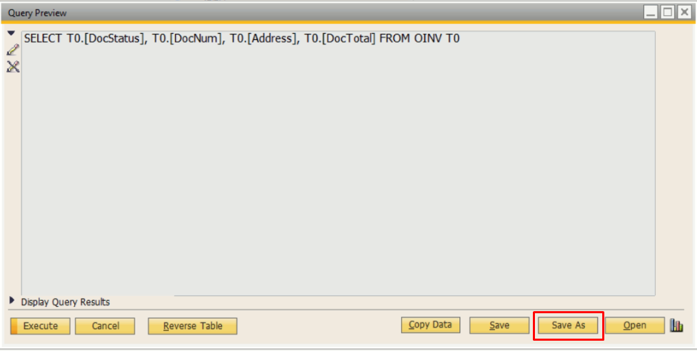 - Klik tombol Save As yang berada di bagian kanan bawah jendela Query Generator.