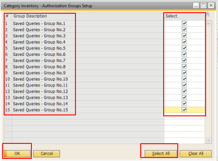 - Jika query ingin dapat diakses oleh seluruh pengguna, pilih opsi Select All agar kategori dan query tersedia untuk semua grup.